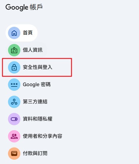 2. 進入後,點選進入左側選單「安全性與登入」功能選單。
