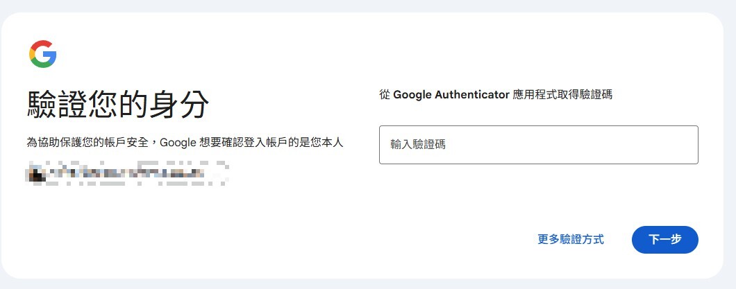 4. 有可能會驗證 Google 帳號,會請你輸入密碼或是 Google Authenticator 應用程式驗證碼( 需至 Google Play 商店自行安裝設定後取得驗證碼 )。