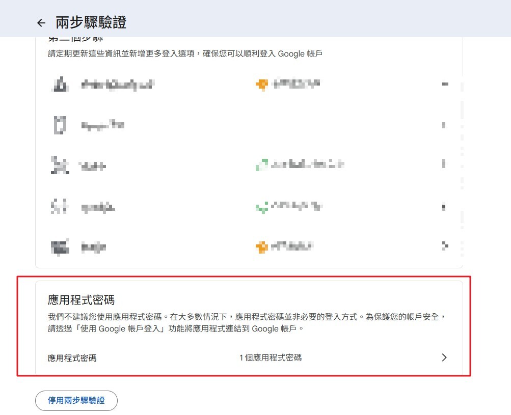 5. 第4點驗證完成後,進入兩步驗證功能畫面中後,下方會看到「應用程式密碼」區塊,點選進入。